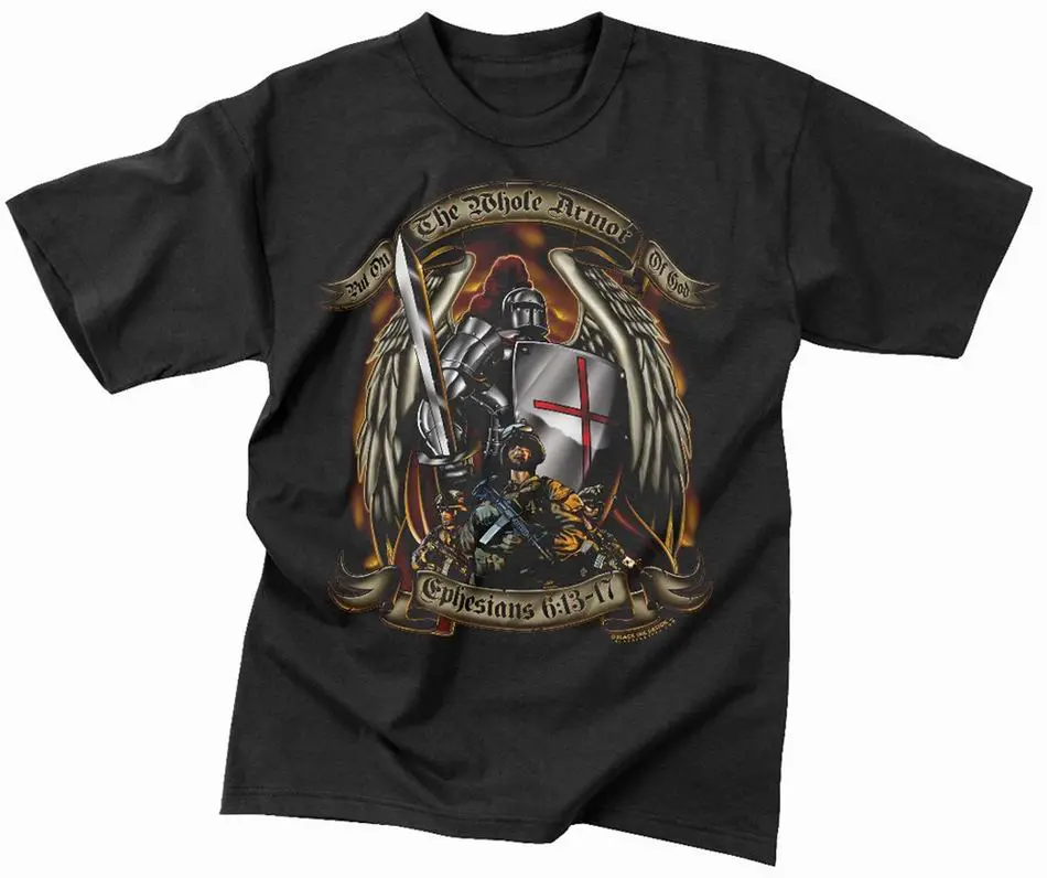 Майка ROTHCO MILITARY GRAPHIC "PUT ON THE WHOLE ARMOR OF GOD" (короткий рукав)(100% cotton)(Bla